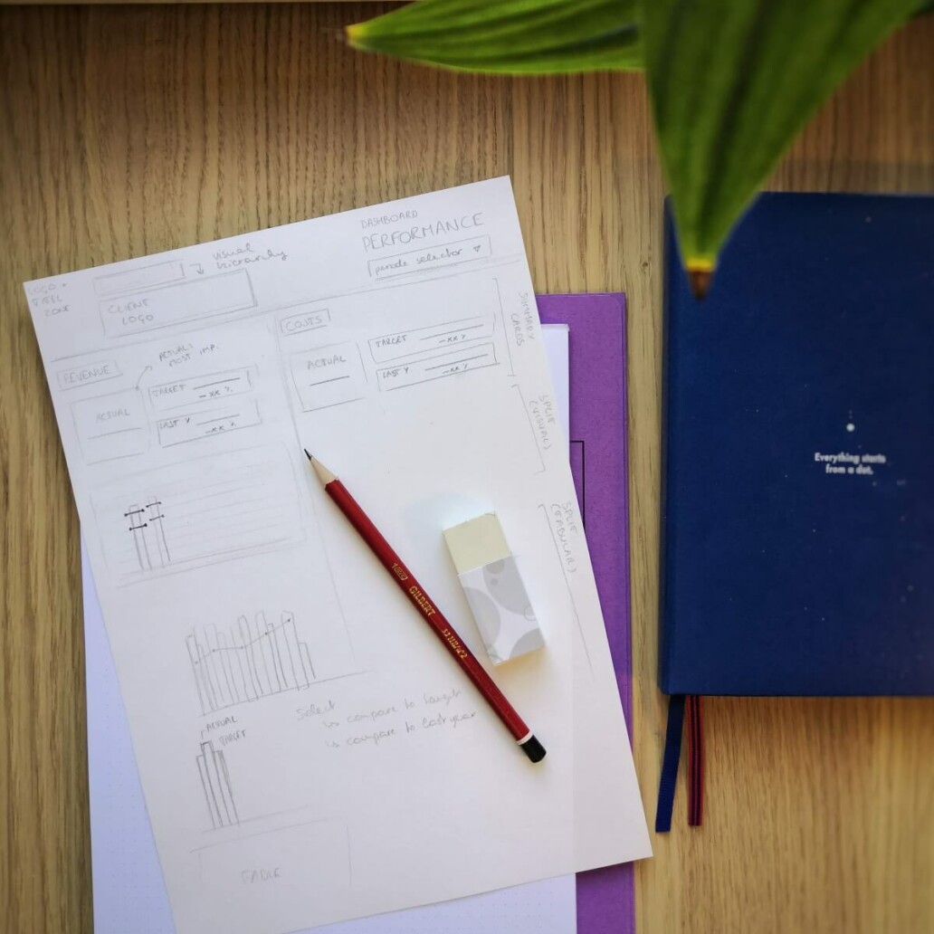 - An interview with the client to get to know the end user, and their specific goals when interacting with the dashboard. This defines one or more ‘use cases’ which the dashboard aims to solve as effectively as possible.